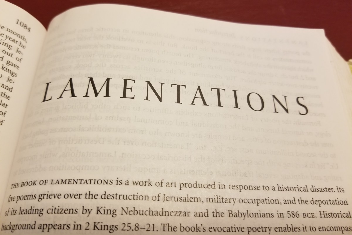 Lamentations is a book about grief. It’s a poetic representation of our communal grief. How do we grieve things together? It’s a book that allows us to be angry with God, to blame God, even if God is not at fault. There is room in our grief for anger. There is also room in our faith for this kind of grief and anger. The book is about a group of people who have been destroyed and occupied. It is a book about a group of survivors dealing with trauma.